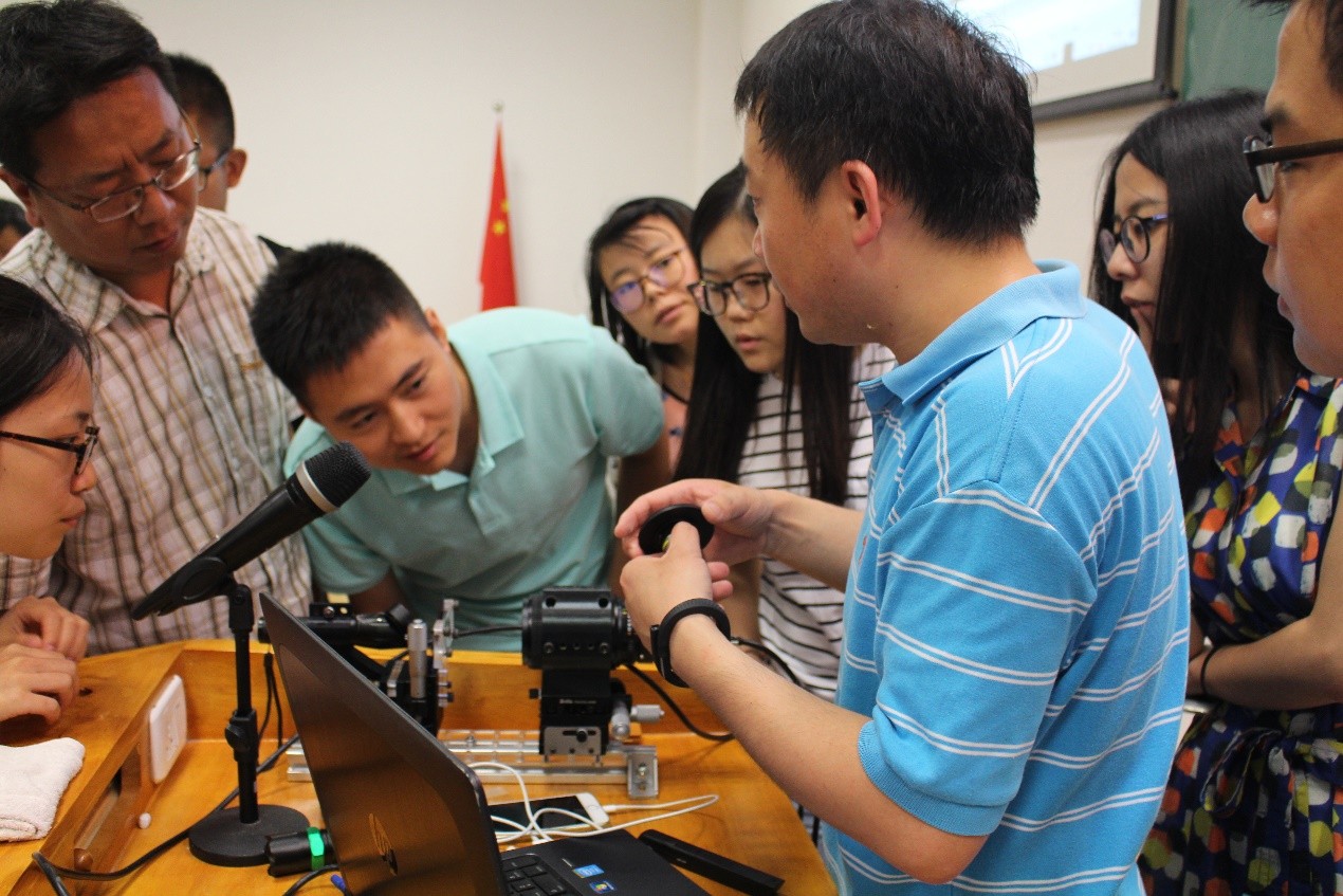 课程开始前,在志愿者的带领下,暑期讲习班的同学们先参观了厦大海韵园物理新大楼生物仿生与软物质研究院的相关实验室,并了解了一些实验室的大型仪器设备操作使用情况。