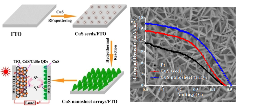 24) Xiaodan Hong, Zijie Xu, Fayin Zhang, Chunfeng He, Xiaoyue Gao, Qun Liu, Wenxi Guo, Xiangyang Liu, Meidan Ye*, Sputtered seed-assisted growth of CuS nanosheet arrays as effective counter electrodes for quantum dot-sensitized solar cells. Materials Letters, 2017, 203, 73-76.