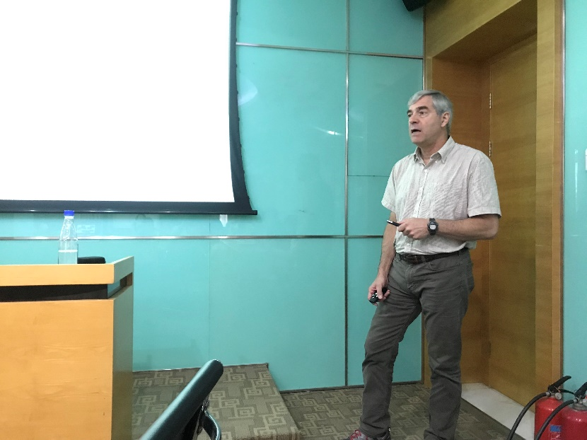 受福建省柔性功能材料重点实验室邀请,美国太平洋西北国家实验室首席科学家兼华盛顿大学材料科学与工程学院教授Jim De Yoreo到实验室进行访问,并于2018年6月22日上午9:30-11:30在材料学院凌峰楼401会议室做了题为“Understanding the pathways and dynamics of nucleation and self-assembly with atomically resolved in situ force microscopy”的报告。报告内容主要阐述了不论从简单的无机晶体还是到大分子结构,成核是有序结构形成的重要过程。历经15年的观察研究,Jim De Yoreo教授团队发现了一套丰富的分层成核途径,涉及高度有序的包括从多离子簇到密集的液滴,以及瞬态晶体或非晶相。尽管如此复杂,当考虑到自由能势能面扰动的耦合效应和动力因素的影响时,理解这些根植于经典概念中的分层路径的整体框架就出现了。在报告过程中,Jim De Yoreo教授描述了这个框架,并使用一系列的无机、有机和大分子体系原子原位解析AFM研究来说明在这些扰动和动力学因素发挥作用时,成核过程的演变。Jim De Yoreo教授团队的这些研究结果为我们理解简单的盐晶体、有机金属线和蛋白质网络等各式体系的有序生长提供了共同的基础。