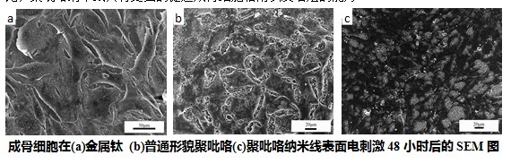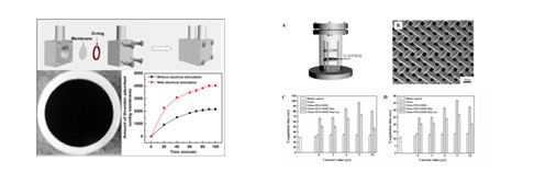 (1)聚吡咯纳米线与成骨细胞的相互作用。导电高分子聚吡咯具有优异的生物相容性,是一种具有刺激-响应性能,能对多种细胞的粘附、增殖和功能分化起到促进作用的生物材料。但目前的相关研究大多围绕普通形貌的聚吡咯展开。我们率先研究了聚吡咯纳米线与成骨细胞在电刺激下的相互作用,结果发现在微量恒流电刺激条件下,与普通形貌的聚吡咯相比,聚吡咯纳米线具有更强的促进成骨细胞粘附以及增殖的能力。