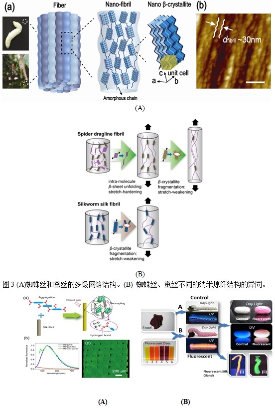 (B)蜘蛛丝、蚕丝结构与性能的关系